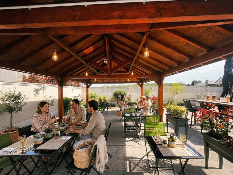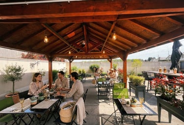 Une terrasse agréable, parfaite pour savourer un verre entre amis ou partager un repas au soleil.
